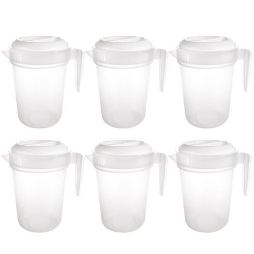 Conjunto com 6 jarras. Jarra plástica reforçada com capacidade para 2 litros. Possui tampa e graduação para medida. Sua tampa tem duas formas de abertura: de um lado o fluxo de líquido é contínuo e o outro possui coador para gelo e pedaços de fruta. É produzida em material atóxico, livre de BPA e pode ser usada no freezer e no micro-ondas.Material: polipropilenoCapacidade: 2 litrosComprimento: 20,0 cm / Largura: 15,6 cm / Altura: 22,0 cm