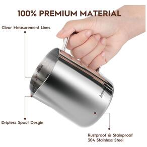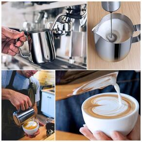 O batedor de leite pode ser de diferentes formas espuma ou leite vaporizado para café com leite medir líquidos sirva leite ou creme. Equipado com uma caneta latte art que pode moldar tipos de lindos padrões de café. Perfeito para fazer espuma ou leite fumegante para café expresso, cappuccino ou chocolate quente. Seja seu próprio barista em casa e no escritório. QUALIDADE PREMIUM Os jarros de leite fumegante e a caneta de arte de café são feitos de aço inoxidável 304 com acabamento cromado. À prova de ferrugem, à prova de manchas, à prova de calor e não tóxico, inquebrável para o uso diário. DESIGN PONTO BOCA Pode evitar o vazamento de líquido da jarra e tornar o padrão de café. PROJETO HUMANIZADO A junta de solda do corpo do copo e do cabo é firme, durável de usar. Design personalizado para fácil transporte e economia de energia Marca: Não Informado