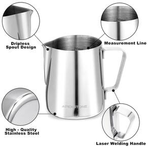 O jarro de espuma de leite é feito de aço inoxidável 304 com aparência elegante, não ferrugem, anticorrosão, enquanto para evitar a ferrugem, você precisa mantê lo limpo e evitar usá lo para sal, salmoura, suor, água do mar, solo Para vaporizar seu leite ou creme para ficar macio e sedoso com poucas bolhas crie latte art perfeito e pessoal para o seu café ou cappuccinos medir seu leite, água, líquido, espuma e medir em um jarro O jarro de espuma de leite portátil evita que você seja escaldado. Fundo redondo de aço inoxidável facilita a lavagem sem manchas para esconder O bico de servir Curve separa facilmente a espuma do líquido, ajuda a criar latte art pessoal, mas perfeito para seus expressos, cappuccinos para seus filhos e seus convidados Tamanho 12 x 7 x altura x diâmetro inferior x diâmetro da boca do copo. Este jarro de espuma com capacidade de 12 onças , 350 ml é ótimo para usar em casa ou no escritório para você e um casal de amigos. A medição interna facilita a leitura e ajuda a controlar a quantidade de leite ou creme que cada xícara de café ou expresso precisa Marca: Não Informado