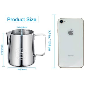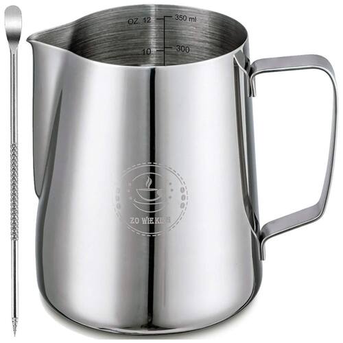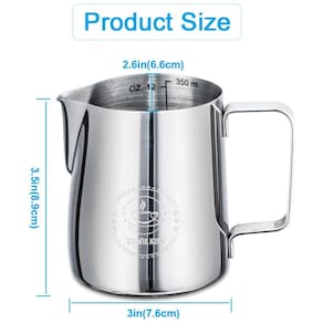 Moda e durável O jarro para espuma de leite é feito de aço inoxidável 304 de alta qualidade, forte e durável, acabamento requintado.não ferrugem, anticorrosão inquebrável para uso diário. Muito fácil de limpar após o uso. Conveniência e precisão Esta capacidade precisa de jarro para espumador de leite de 350 ml gravou a medida do líquido em ambos os lados, torna o fácil de ler, é perfeito para 1 ou 2 xícaras de cappuccinos ou expressos. Projeto de humanização Depois de muitos experimentos, fizemos um projeto de boca estreita exclusivo para este jarro para espuma de leite em aço inoxidável, que controla a velocidade e o volume do derramamento de líquido com precisão, equipado com uma caneta latte art, pode criar uma variedade de belos padrões. a alça segura não esquenta, ajuda você a se concentrar na arte do latte e não se preocupe em se machucar. Ampla aplicação O jarro de leite fumegante pode ajudá lo de várias maneiras, como espumar ou creme de leite fumegante para um café com leite, medir líquidos, servir leite ou creme. Você pode usá lo em casa, escritório, café ou hotel. O jarro de espuma também pode ser um belo presente para festas ou festivais Marca: Não Informado