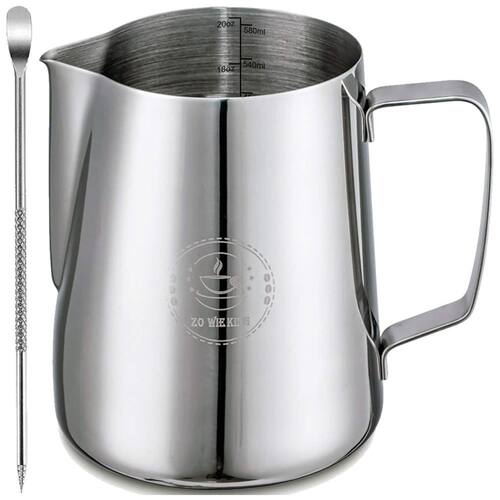 Moda e durabilidade O jarro para espuma de leite é feito de aço inoxidável 304 de alta qualidade, forte e durável, acabamento requintado.não ferrugem, anticorrosão, inquebrável para uso diário. Muito fácil de limpar após o uso. Conveniência e precisão Esta precisa capacidade de 580 mL de batedor de leite gravou a medida do líquido em ambos os lados, torna o fácil de ler, é perfeito para 2 ou 3 xícaras de cappuccinos ou expresso. Projeto de humanização Depois de muitos experimentos, fizemos um projeto de boca estreita exclusivo para este jarro para espuma de leite em aço inoxidável, que controla a velocidade e o volume do derramamento de líquido com precisão, equipado com uma caneta latte art, pode criar uma variedade de belos padrões. a alça segura não esquenta, ajuda você a se concentrar na arte do latte e não se preocupe em se machucar. Ampla aplicação O jarro de leite fumegante pode ajudá lo de muitas maneiras, como espumar ou creme de leite fumegante para um café com leite, medir líquidos, servir leite ou creme. Você pode usá lo em casa, escritório, café ou hotel. O jarro de espuma também pode ser um belo presente para festas ou festivais Marca: Não Informado