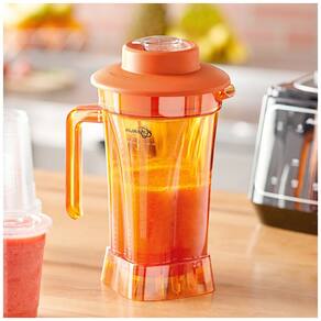 A peça inclui tampa de travamento seguro e conjunto de lâminas, permitindo montagem direta na base compatível e início rápido do uso. O material em Tritan oferece boa resistência a impactos, com menor tendência à trinca ou turvação, e suporta tanto ingredientes quentes quanto frios. A cor laranja pode ser usada em sistemas de código de cores para auxiliar na separação de jarras por tipo de preparo, auxiliando na redução de risco de contaminação cruzada em cozinhas comerciais de restaurantes, lanchonetes e bares.