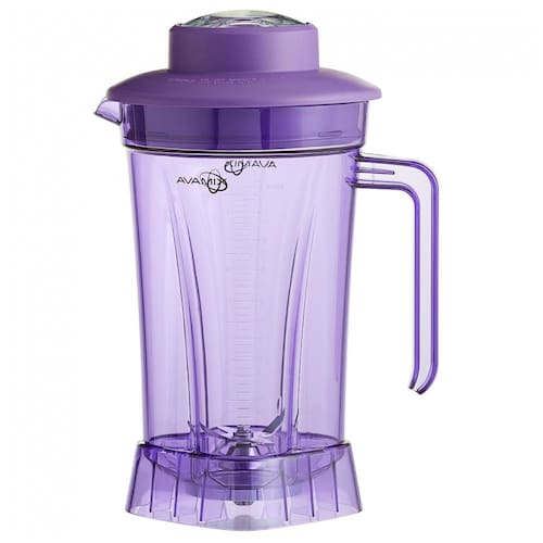 A jarra liquidificador AvaMix 928BLJAR64PP é um vaso de 1,9 litro fabricado em plástico Tritan da Eastman, sem BPA, projetado para uso com liquidificadores das séries BX e BL da AvaMix. O corpo roxo translúcido permite visualizar o andamento de preparos como sopas, salsas, molhos, marinadas, purês, coquetéis em batch e smoothies, facilitando o controle de consistência durante a mistura.