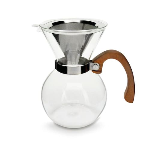 Materiais: Vidro borossilicato, madeira e aço inoxidável Contem: 1 Jarra de servir café e 1 filtro de aço inoxidável
