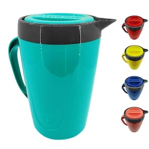 Jarra térmica caribe 2 litros verde suco agua chá unitermi Cor: azul-turquesa A jarra caribe foi desenvolvida com parede dupla e isolamento em poliuretano, impedindo a condensação de líquidos pela parede da jarra. Sua conservação térmica é de 6 horas para líquidos frios e 12 horas com gelo. Possui tampa com sistema de trava, impedindo o derramamento e duas opções para a saída do líquido. Produto livre de bpa.