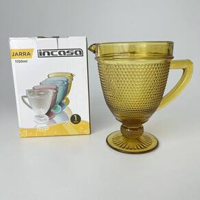 A Jarra Vidro Com Alça Amarelo Âmbar Relevos Bolinhas 1L150Ml é uma peça versátil que nunca sai de moda e sempre recebe muitos elogios. É um item obrigatório para deixar a sua mesa ainda mais charmosa e elegante. Além disso, essa jarra também pode ser uma ótima opção de presente para amigos e familiares que apreciam uma decoração sofisticada.