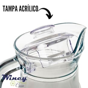 Jarra Vidro Lisa Drink Sucos Tampa Acrílico 1,5 Nowra Wincy