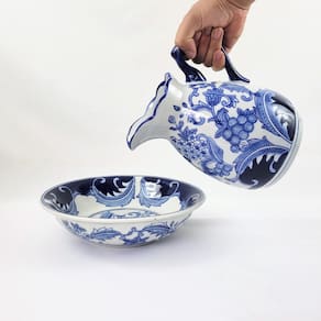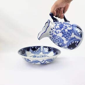 Jarro com Bacia de Porcelana Azul e Branca - Elegância e Sofisticação para Sua Casa Inigual Decor