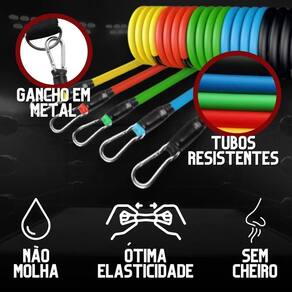 Especificações: - Elástico Preto 13,6 Kg - Elástico Verde 11,3 Kg - Elástico Azul 9 kg - Elástico Vermelho 6,8 kg - Elástico Amarelo 4,5 kg
