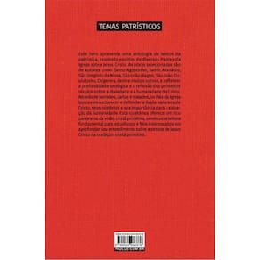 Jesus Cristo nas fontes patrísticas é uma obra composta por uma seleção de textos sobre a figura de Jesus Cristo, escritos pelos Padres da Igreja dos primeiros séculos da era cristã, comentados e comparados à luz da historiografia e da teologia, com a linguagem de nosso tempo. Trata de temas como a encarnação do Deus Filho, a salvação realizada por ele, a sua infância, a teofania no Jordão, o confronto no deserto da Judeia, a manifestação da sua glória, os milagres, as curas de enfermidades e sofrimentos, o ensinamento da oração e pelas parábolas, o chamado aos pecadores, a promessa do pão da vida, os eventos em Jerusalém, o vigor de quem veio para “trazer fogo à terra”, mas que é manso e humilde, o mandamento novo, a descida aos infernos, a ressurreição. Marca: Não Informado