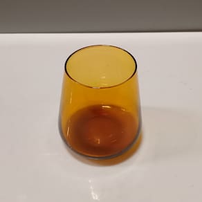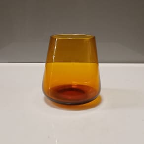 Altura: 10,2 cm Largura: 9 cm Profundidade: 9 cm Espessura: ,2 cm Peso: 0,16 Kg Diâmetro da Base: 8,5 cm Diâmetro do Topo: 6,4 cm Material: Vidro Cor: Âmbar