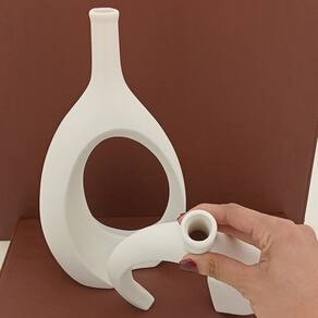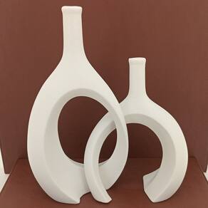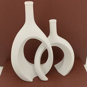 Altura: 22 cm Largura: 16 cm Profundidade: 7 cm Espessura: ,5 cm Peso: 0,49 Kg Diâmetro da Base: 8 cm Diâmetro do Corpo: 15 cm Diâmetro do Topo: 2 cm Material: Cerâmica Cor: Branco