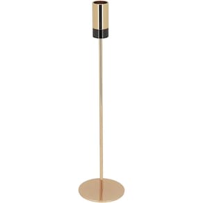 Altura: 33,5 cm Largura: 3 cm Profundidade: 3 cm Espessura: ,2 cm Peso: 0,17 Kg Diâmetro da Base: 7,5 cm Diâmetro do Corpo: ,7 cm Diâmetro do Topo: 2 cm Material: Metal Cor: Dourado