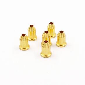 Jogo de Buchas traseiras Douradas para passagem de cordas nas instalações de pontes que possibilitem a passagem das cordas por trás do instrumento, estilo telecaster, ficando um acabamento premium.