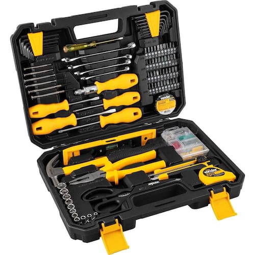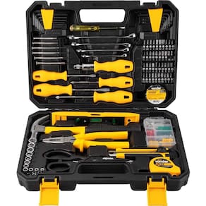 1 Jogo de ferramentas, composto por 163 peças, sendo: 1 maleta, 1 porta-chaves allen/hexagonais, 1 porta-chaves hexalobular, 4 porta-bits, 1 porta-parafusos/buchas, 11 soquetes sextavados em aço cromo vanádio encaixe 1/4" (4 mm, 5 mm, 6 mm, 7 mm, 8 mm, 9 mm, 10 mm, 11 mm, 12 mm, 13 mm e 14 mm), 6 chaves de precisão (4 fenda (1,4 mm, 2 mm, 2,4 mm, 3 mm) e 2 Phillips (PH0 e PH1)), 8 chaves allen/hexagonais em aço cromo vanádio (1,5 mm, 2 mm, 2,5 mm, 3 mm, 4 mm, 5 mm, 5,5 mm e 6 mm), 8 chaves hexalobular em aço cromo vanádio (T9, T10, T15, T20, T25, T27, T30 e T40), 4 chaves combinadas aço cromo vanádio (8 mm, 10 mm, 12 mm e 14 mm), 1 trena 3 m, 1 estilete 18 mm, 3 lâminas para estilete, 1 alicate universal 8" em aço cromo vanádio, 1 chave teste, 1 tesoura 210 mm, 1 martelo unha 20 mm, 1 régua nível, 1 fita isolante 5 m, 2 chaves de fenda em aço cromo vanádio (5 mm x 75 mm (3/16" x 3") e 6,3 mm x 100 mm (1/4" x 4")), 2 chaves phillips em aço cromo vanádio (5,0 mm x 75 mm (n1 - 3/16" x 3") e 6,3 mm x 100 mm (n2 - 1/4" x 4")), 1 cabo adaptador para bits com catraca encaixe 1/4", 14 parafusos autoatarraxantes (3 mm x 19 mm, cabeça chata, phillips), 10 parafusos autoatarraxantes (3,6 mm x 25 mm, cabeça chata, phillips), 7 parafusos autoatarraxantes (4 mm x 30 mm, cabeça chata, phillips), 14 buchas nylon de fixação 5 mm, 10 buchas nylon de fixação 6 mm, 7 buchas nylon de fixação 7 mm, 40 bits magnéticos em aço cromo vanádio encaixe 1/4" ((7 fenda (3,5 mm (2 peças), 4 mm (2 peças), 5,5 mm, 6,5 mm e 8 mm), 8 phillips (n 0, n 1, n 2 e n 3 (2 peças cada)), 6 allen (2 mm, 3 mm, 4 mm, 5 mm, 6 mm e 7 mm), 3 quadrados (S1, S2 e S3), 7 hexalobular (T10, T15, T20, T25, T27, T30 e T40), 3 pozidrive (PZ1, PZ2 e PZ3), 4 três pontas (1, 2, 3 e 4) e 2 adaptadores).