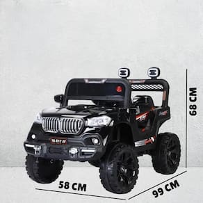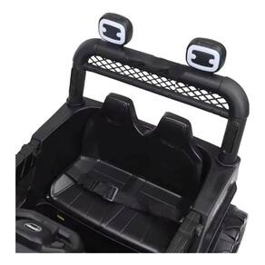 Controle remoto Bluetooth 2.4G: os pais podem controlar facilmente os movimentos do Jeep com o controle remoto incluído, proporcionando uma camada extra de supervisão. Motor elétrico duplo de 12 V com acionamento duplo 380: motor potente que garante desempenho dinâmico, capaz de enfrentar inclinações e superfícies irregulares. Portas duplas: design realista com portas funcionais, aumentando a autenticidade da experiência de dirigir.