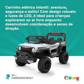 O Jipe Adventure V12 da Bang Toys é um carro elétrico infantil robusto, inspirado nos veículos off-road, desenvolvido