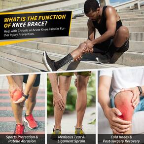 - Estabilizador de memória patenteado exclusivo para prevenção adicional: o estabilizador lateral em forma de engrenagem com 7 engrenagens tem uma função de bloqueio exclusiva para evitar dobras excessivas das articulações do joelho; evita efetivamente mais lesões ou danos como entorses, distensões e deslocamento do joelho causados por um golpe ou mudança repentina na direção do joelho; ajuda a fortalecer o suporte lateral do tendão, músculo e osso