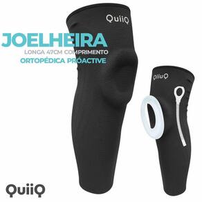 Joelheira Caneleira Longa PróActive QuiiQ com 47cm de comprimento. Oferecendo máxima compressão, estabilidade e conforto com sua dupla haste flexível de aço leve e anel de silicone patelar.