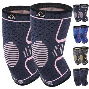 - [Proteção superior] As joelheiras APEXUP para homens e mulheres ajudam a aliviar a dor da artrite e evitar rupturas no menisco; reduz os danos musculares durante atividades diárias como trabalho, caminhada, corrida, basquete, futebol, golfe, tênis e esqui, enquanto aumenta o fluxo de oxigênio, diminui o acúmulo de ácido lático e evita a dor no joelho pós-exercício