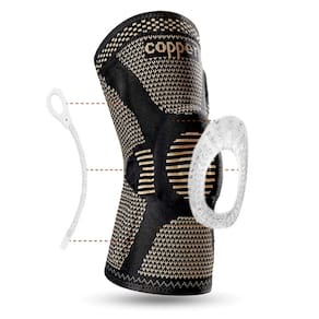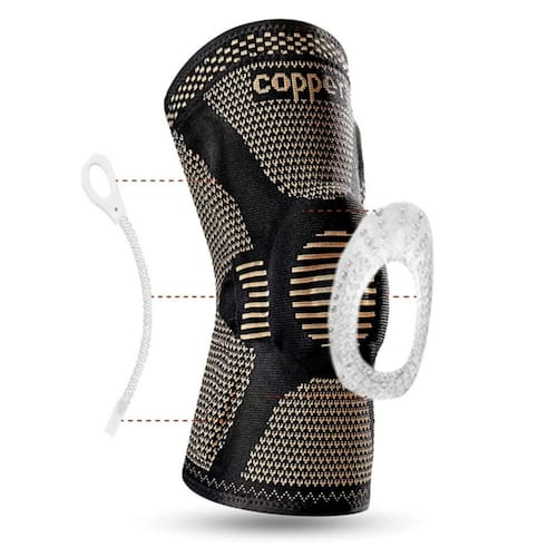 Joelheira de cobre com almofada de gel na patela e suportes laterais. Características e funcionalidade: Classificado nos seguintes tamanhos: SMLXL. Nas imagens do nosso anúncio está o guia de medidas de tamanho para que você possa identificar o seu. -Compressão quente e respirável: usando tecido com infusão de cobre e tecnologia inovadora de tricô, nossas joelheiras para dor no joelho ajudam a aquecer e relaxar os músculos e as articulações para que você possa reduzir a inflamação e melhorar a circulação natural. - A joelheira com estabilizadores (joelheira) pode ser usada para todos os tipos de atividades, como corrida, caminhada, levantamento de peso, crossfit ou longos dias de trabalho para suporte ativo total. -Estabilização avançada do joelho: esta joelheira de cobre com mola lateral fornece suporte total acima e abaixo do joelho para você se mover, correr, pular, deslizar e agachar com maior estabilização e conforto sem dor. -Aliviar a dor e a inflamação - Usada durante os treinos, nossa joelheira de compressão pode ajudar a manter as articulações do joelho mais flexíveis com uma maior amplitude de movimento, ao mesmo tempo em que reduz a dor da artrite e a dor geral antes, durante e após o exercício.\ n-Design unissex com infusão de cobre\ N-Junto com uma almofada de gel de patela macia de suporte, nossa joelheira se ajusta à sua perna para proporcionar maior conforto. Também está disponível em opções de tamanho pequeno, médio, grande e extra grande para homens e mulheres de todas as formas e tamanhos.