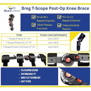 Experimente um novo nível de suporte pós-operatório com a joelheira Breg T Scope Premier. Incomparável em design e função, é ideal para quem está se recuperando de cirurgias ou gerenciando instabilidades no joelho. Confie em seu design de grau médico para sua jornada de reabilitação. O suporte é projetado para fornecer amplitude de movimento protegida e controlada (ROM) para pacientes em recuperação de cirurgia no joelho ou aqueles que têm lesões ou instabilidades no joelho. É baseado no mesmo design telescópico inovador do escopo T autêntico, que profissionais médicos usam há anos.