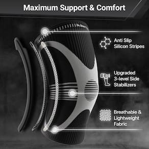 - Estabilização do joelho direcionada, alívio e suporte máximo: composto por estabilizadores laterais atualizados que se ajustam confortavelmente ao redor da articulação do joelho, tiras de silicone antiderrapantes e tecido de alta elasticidade para evitar deslizamento e queda durante o uso diário e exercícios.