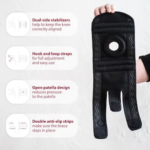 - A joelheira aberta da patela reduz a pressão na patela e na articulação subjacente do joelho, tornando a joelheira patelofemoral perfeita para uso diário. Suporte de joelho perfeito para usar em casa, durante o dia escolar e ao participar de atividades e treinamentos depois da escola. O suporte de joelho infantil é feito para caminhar, correr, brincar, fazer ginástica, caminhadas, boliche, ciclismo, basquete, futebol e outros esportes.