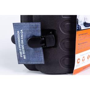 2. Puxe o tecido lateral da calça para dentro da abertura do prendedor e feche a trava para fixar
