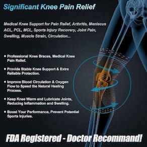- Design atualizado --- Supere os defeitos de produtos similares, joelheiras médicas sem alergias e coceira. Estabilizadores de mola de metal em ambos os lados e a almofada de gel da patela não caem facilmente durante o uso. Estrutura 3D de tecnologia de corte de tricô de alta precisão. Ergonômico: com tecido de compressão respirável de alta elasticidade para ajuste de 360° firmemente na curva da rótula. Tiras de gel antiderrapantes e bandagem de alta elasticidade para evitar escorregar ou rolar durante o exercício, permanecerá no lugar o dia todo!
