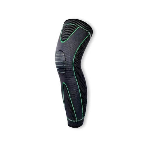 Design Inteligente e Funcional: A estrutura canelada e a faixa elástica superior garantem um encaixe perfeito e firme, que impede que a joelheira escorregue durante o uso. A proteção 3D se adapta à anatomia do seu joelho e panturrilha, proporcionando suporte direcionado.