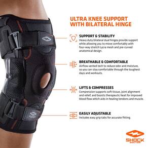 Shock Doctor joelheira, suporte de joelho para estabilidade, lesões do LCA/LCP, suporte de patela, prevenção de hiperextensão, lesões de menisco, distensões de ligamento para homens e mulheres, vendido em unidade (1)