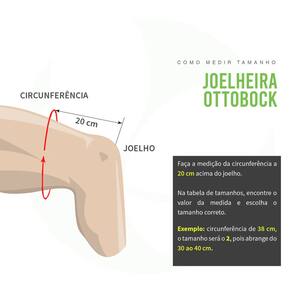 Detalhe Técnico: Tamanho 1: Circunferência do centro do joelho: 24 a 32cm, Circunferência 20cm acima do centro do joelho: 34 a 46cm Tamanho 2: Circunferência do centro do joelho: 30 a 40cm, Circunferência 20cm acima do centro do joelho: 40 a 54cm Tamanho 3: Circunferência do centro do joelho: 36 a 47cm, Circunferência 20cm acima do centro do joelho: 48 a 66cm.