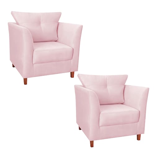 Jogo 02 Poltrona Estofada Com Almofada Isis Recepção Consultório Suede Rosa Bebê - LM DECOR