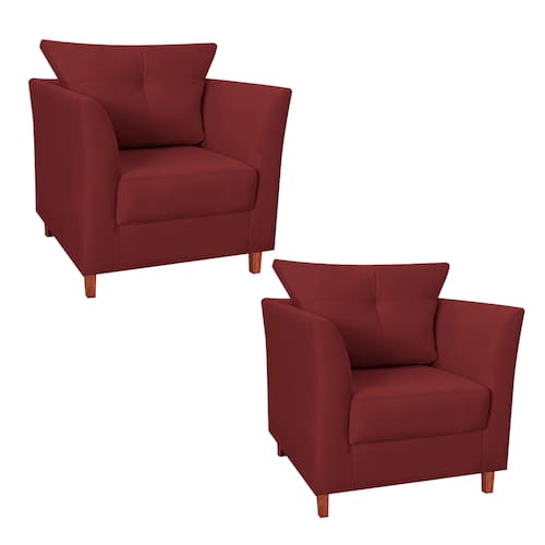 Jogo 02 Poltrona Estofada Com Almofada Isis Recepção Consultório Suede Vermelho Bordô - LM DECOR