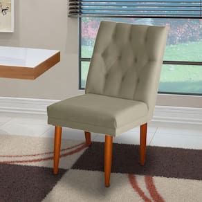 Ela é fabricada em madeira de eucalipto refrorestavel,com tecido suede com pés palitos super reforçada . e com um lindo detalhe em seu encosto com um lindo trabalho de capitonê artesanal,e botão encapados. essa cadeira sem sombra de duvidas além de ser linda é super confortavel.