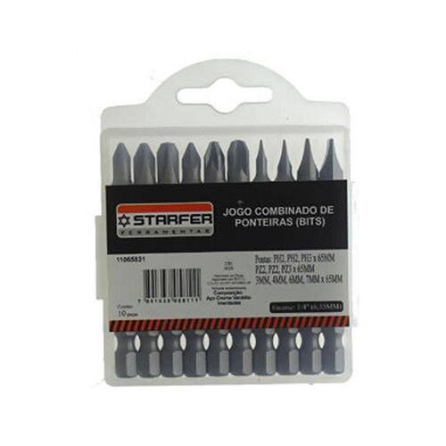 Jogo 10 Bits Ponta Combinadas Para Parafusadeira em Aço Cromo Vanádio com Alta Qualidade