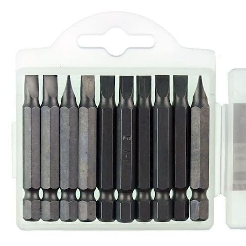 Jogo 10 bits ponta fenda 5mm para parafusadeira em aço cromo vanádio de alta qualidade