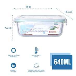 Os potes com tampas herméticas Click Glass são perfeitos para o dia a dia, garantem o melhor sabor, não fica com cheiro indesejado e você pode esquentar no Micro-ondas ou Forno (Tire a tampa nesses casos), ideal para quem trabalha e leva o alimento de casa, ou para guardar diversos alimentos na geladeira/freezer. Além do mais, é fácil de lavar e super resistente.