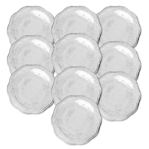 Jogo 10 Prato de Sobremesa Vidro New Butterfly Borboletas Flores 20cm Lyor