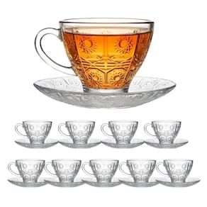 Jogo 10 Xícara de Chá Vidro Transparente com Pires Bohemia Café Relevo 220ml Em Casa Tem