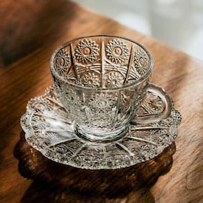 Xícara de Chá Vidro Transparente com Pires Bohemia Café Relevo 220ml Em Casa Tem