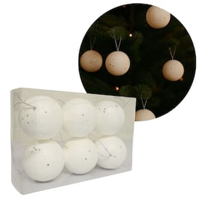 Jogo com 12 Bolas de Natal Brancas Max Glitter com Lantejoulas Prata | 6cm de Diâmetro | Brilho Intenso e Elegância