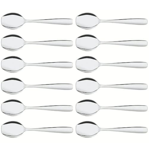 Garantia: 90 dias / Peso total: 192g / Cor predominante: inox / Referência: 7798139224284; Dimensões de cada colher: 12,8cm (C) x 3cm (L) x 1,5cm (A); Conteúdo: 12 colheres para sorvete; Material: aço inox.