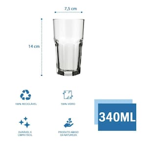 Jogo com 12 Copos De Vidro 340ml Bristol Nadir Figueiredo
