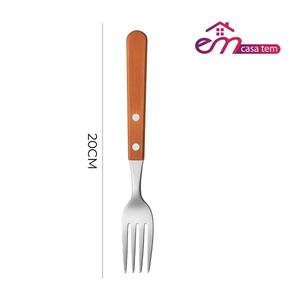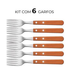 Jogo 6 Garfos Cabo de Madeira Churrasco Astana 20cm Em Casa Tem