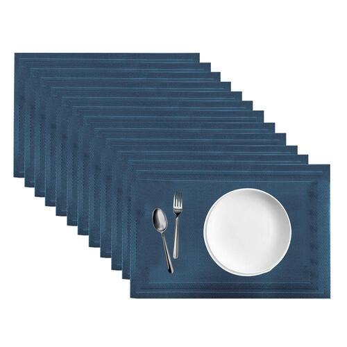 Jogo 12 Lugar Americano Retangular Mesa Azul 30x45cm PP Em Casa Tem
