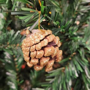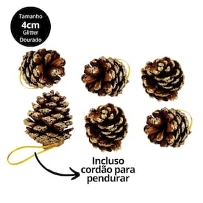 - Composição: Pinha Natural e Glitter Dourado