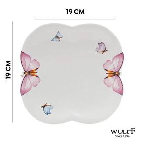 Prato de Sobremesa Borboletas 19cm Porcelana Branco Wolff