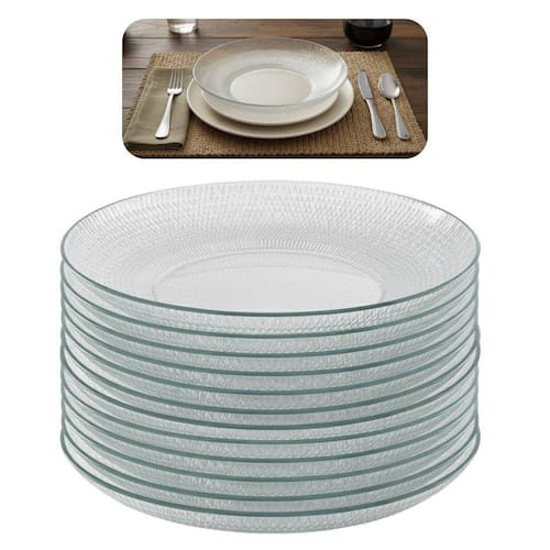 Jogo 12 Prato Fundo de Vidro Gema Plus Transparente 22,5cm Class Home